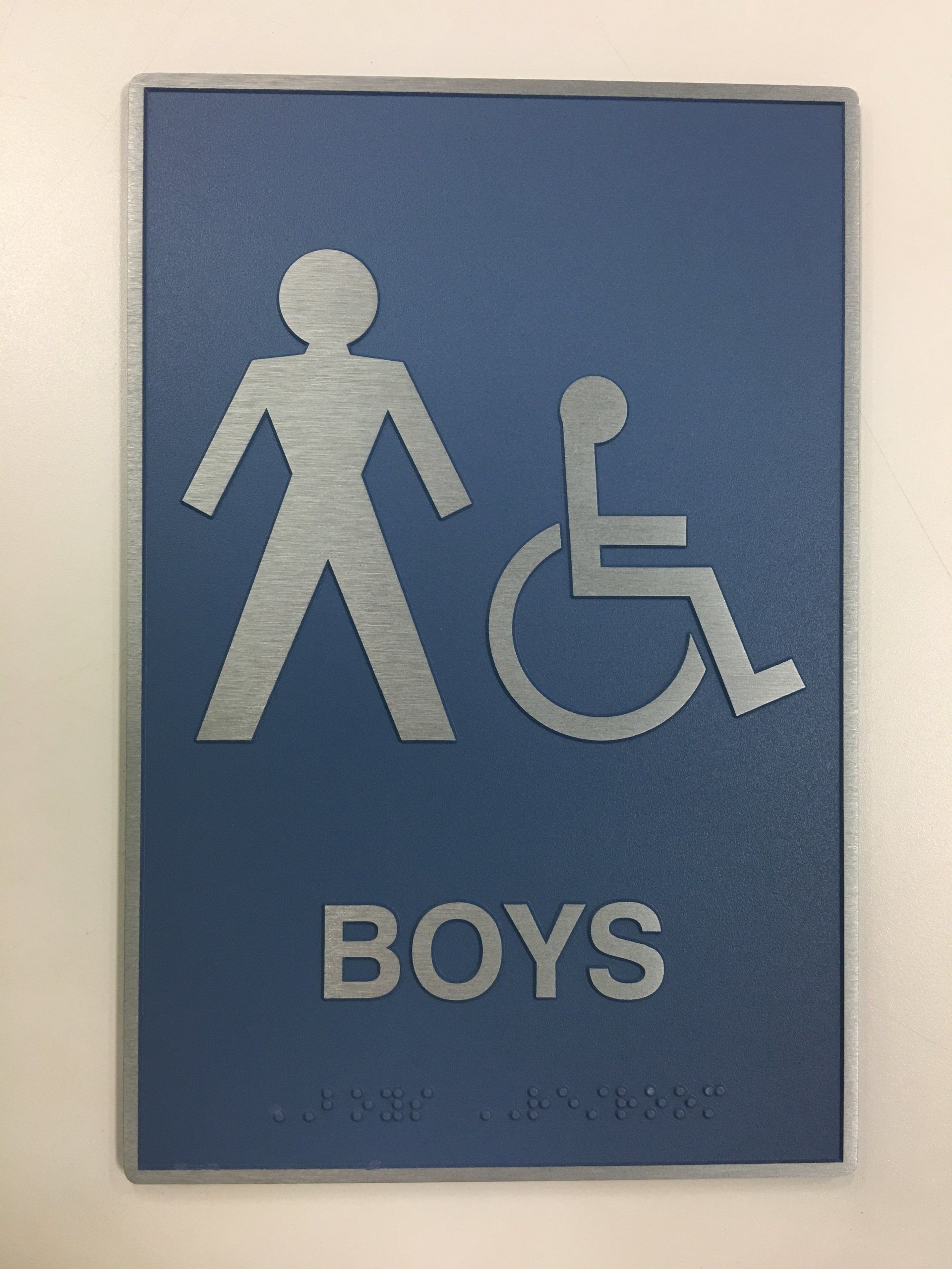 .153 Heavy Gauge Zinc, Boys Restroom Sign, Heavy Metal, ADA Braille