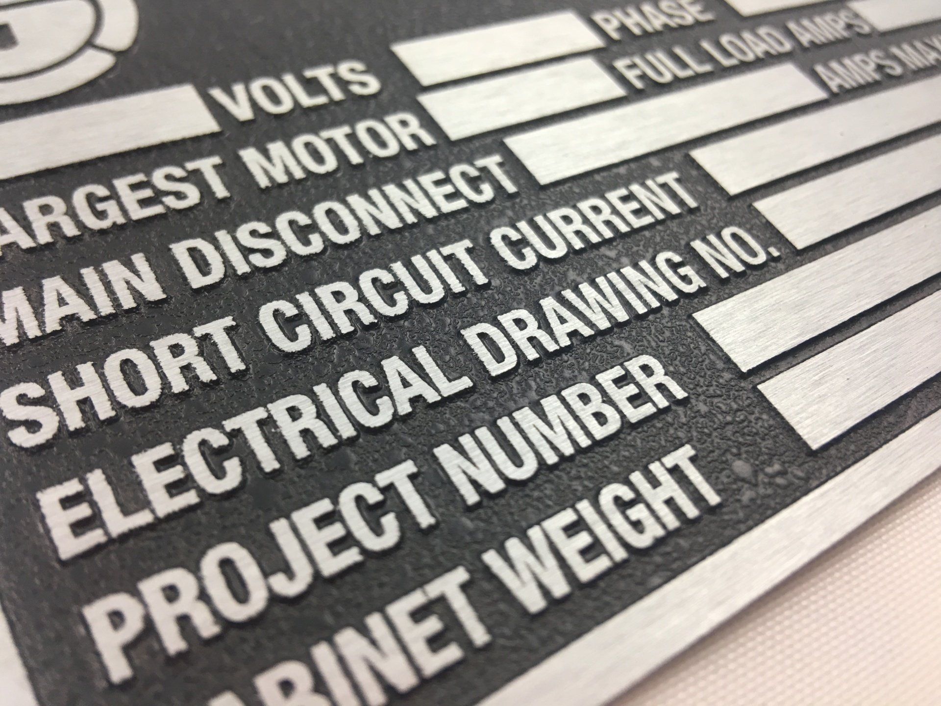 Data Motor Tag Plate, Volts-Phase-Hertz, Deep Etched