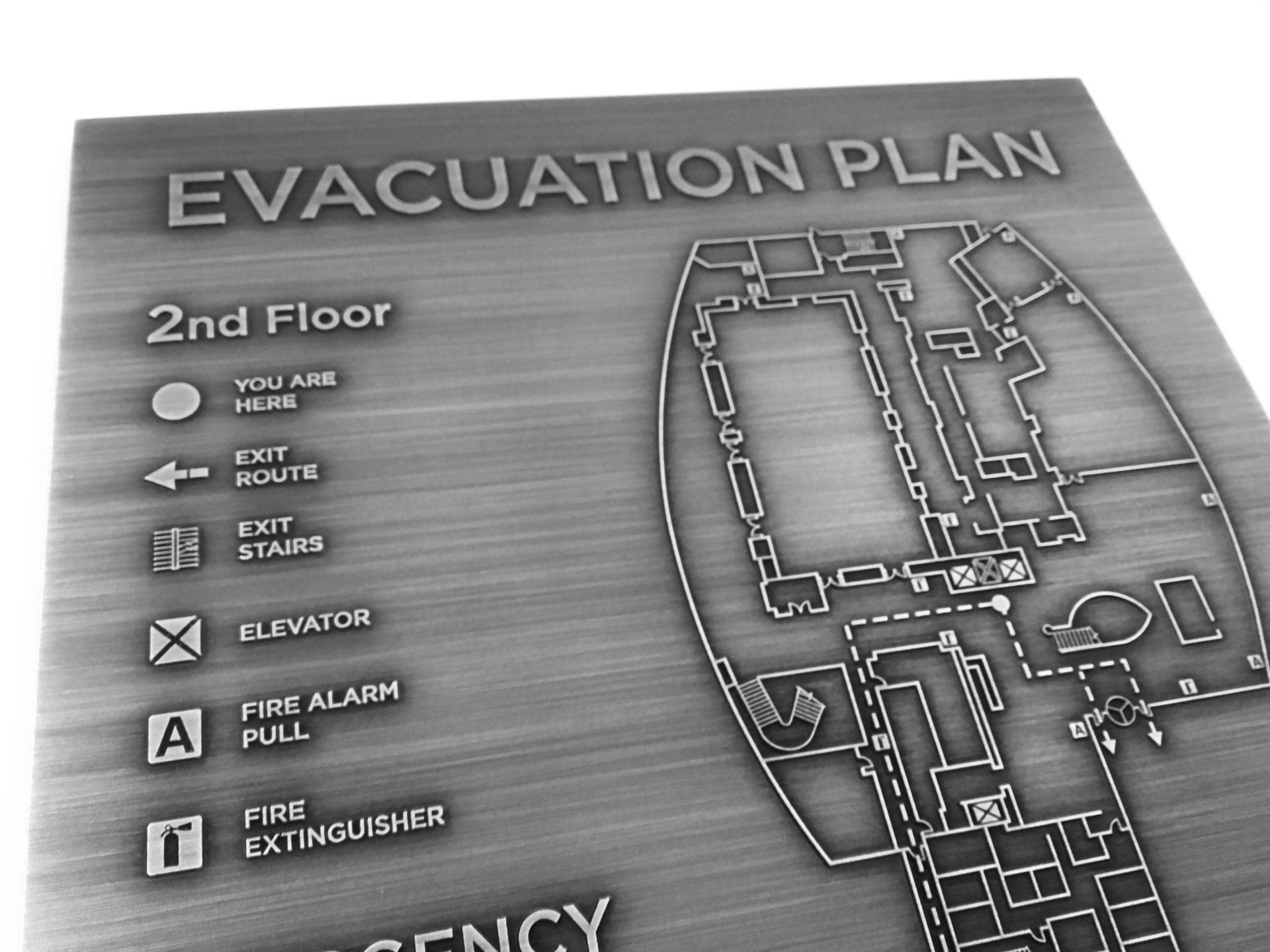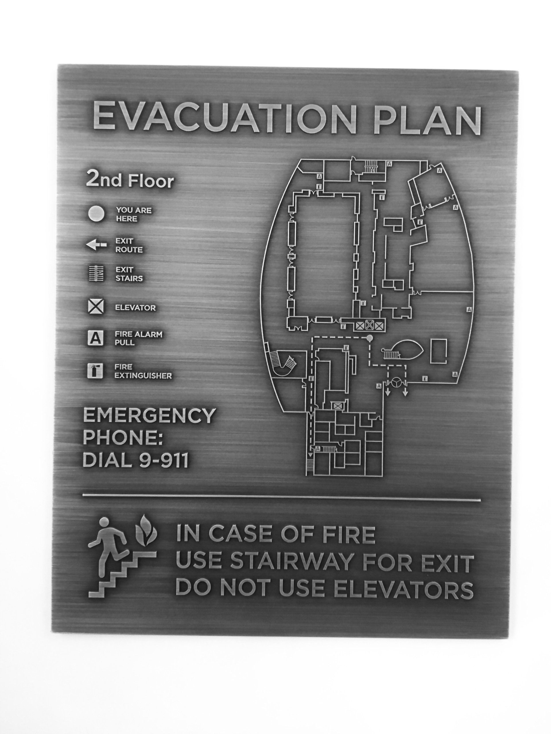 Evacuation Plan Map, In Case of Fire Use Stairway for Exit, Do Not Use Elevator Signage