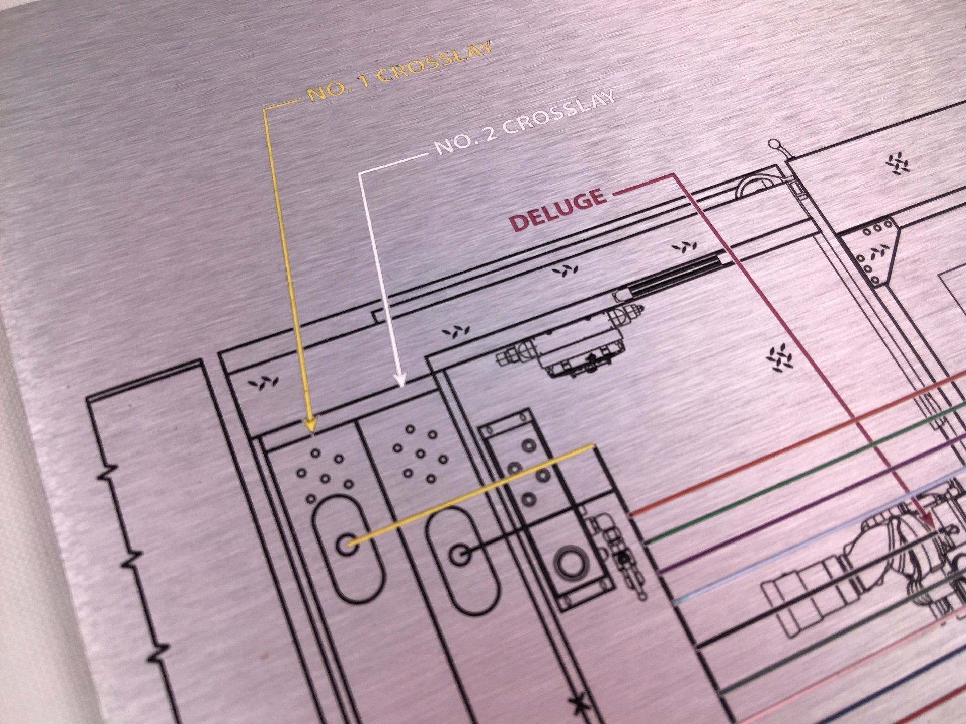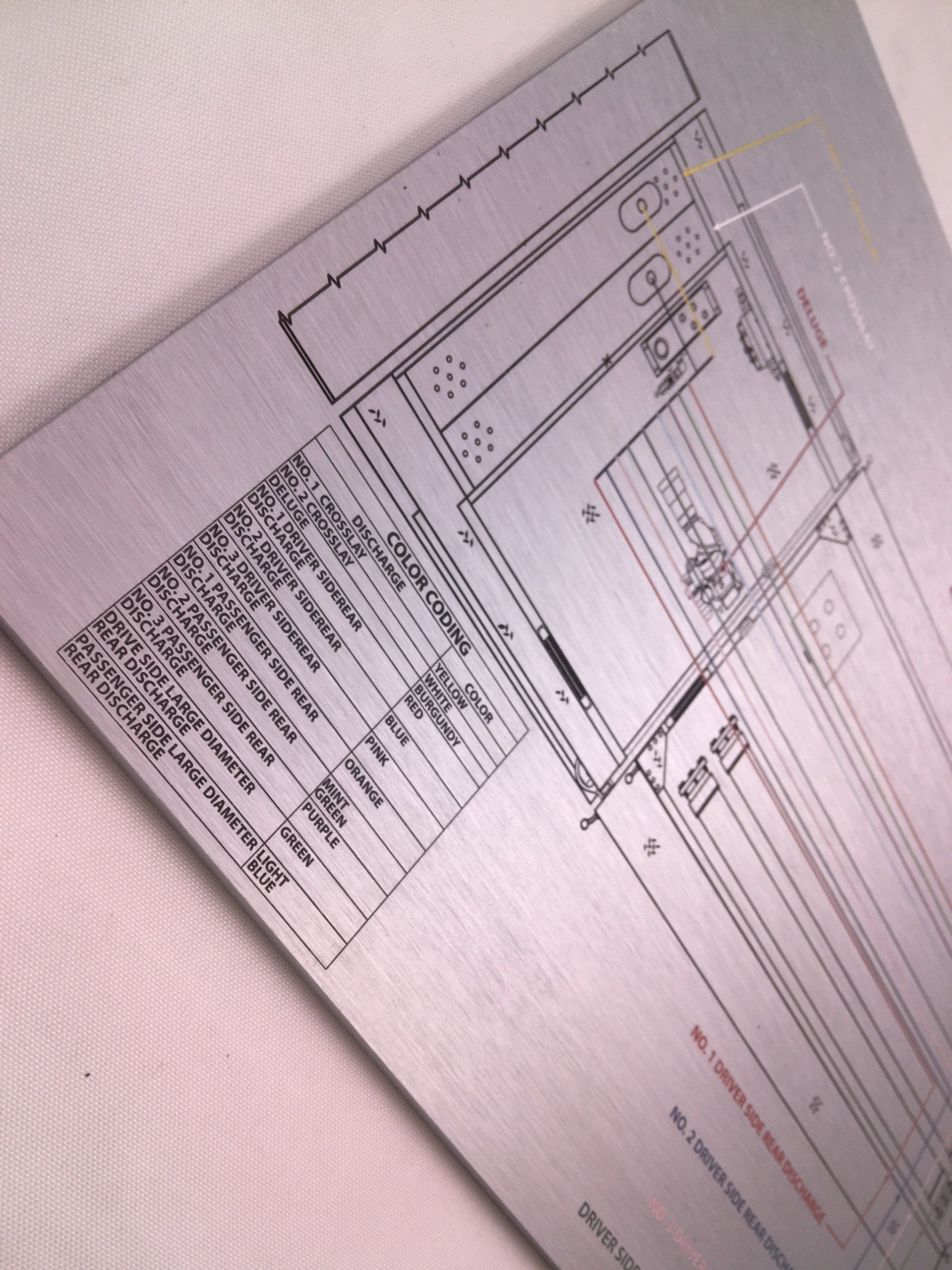 Fire Truck Piping Schematic Map, Long Lasting Zinc, Metal Schematic Layout