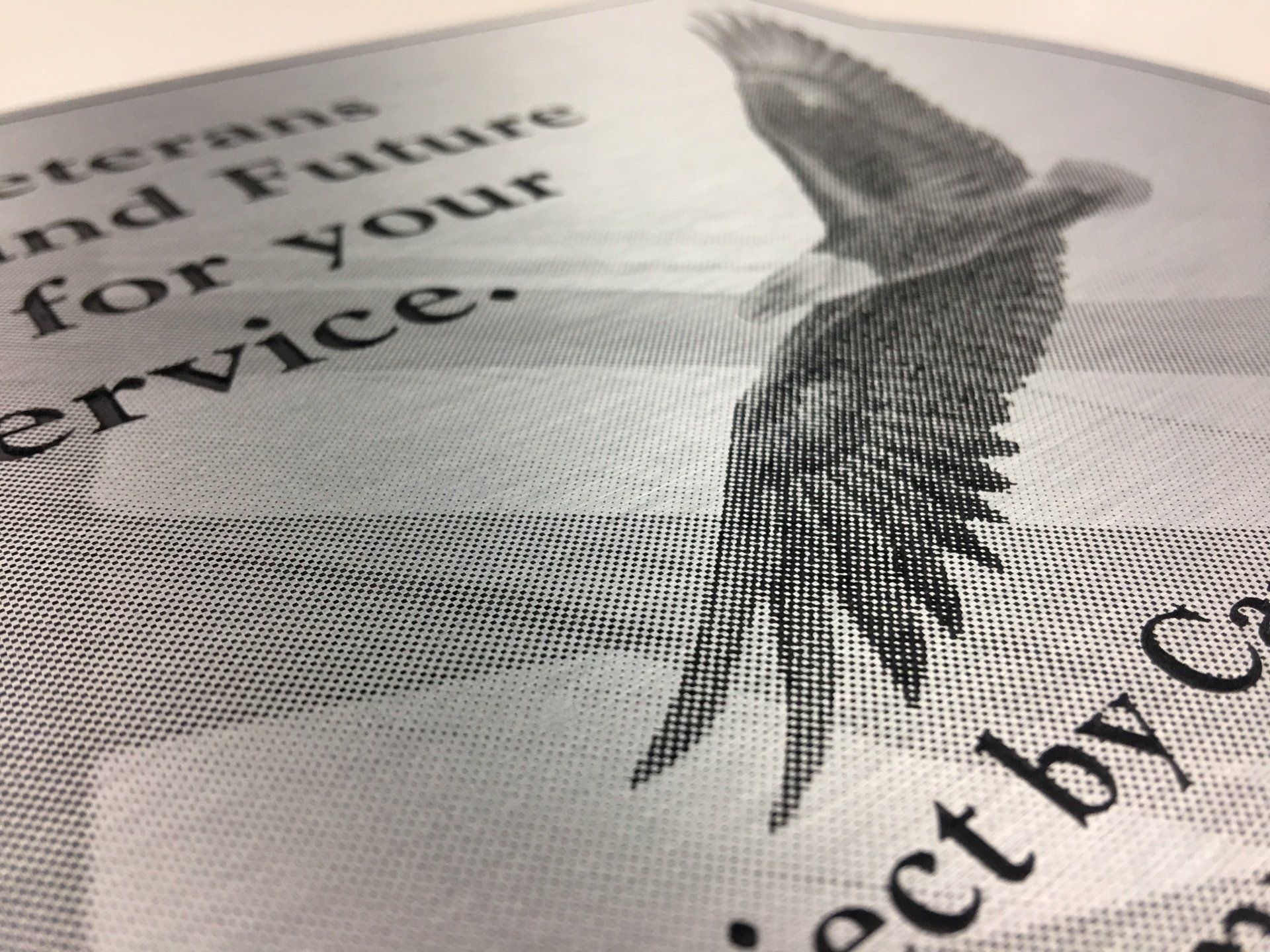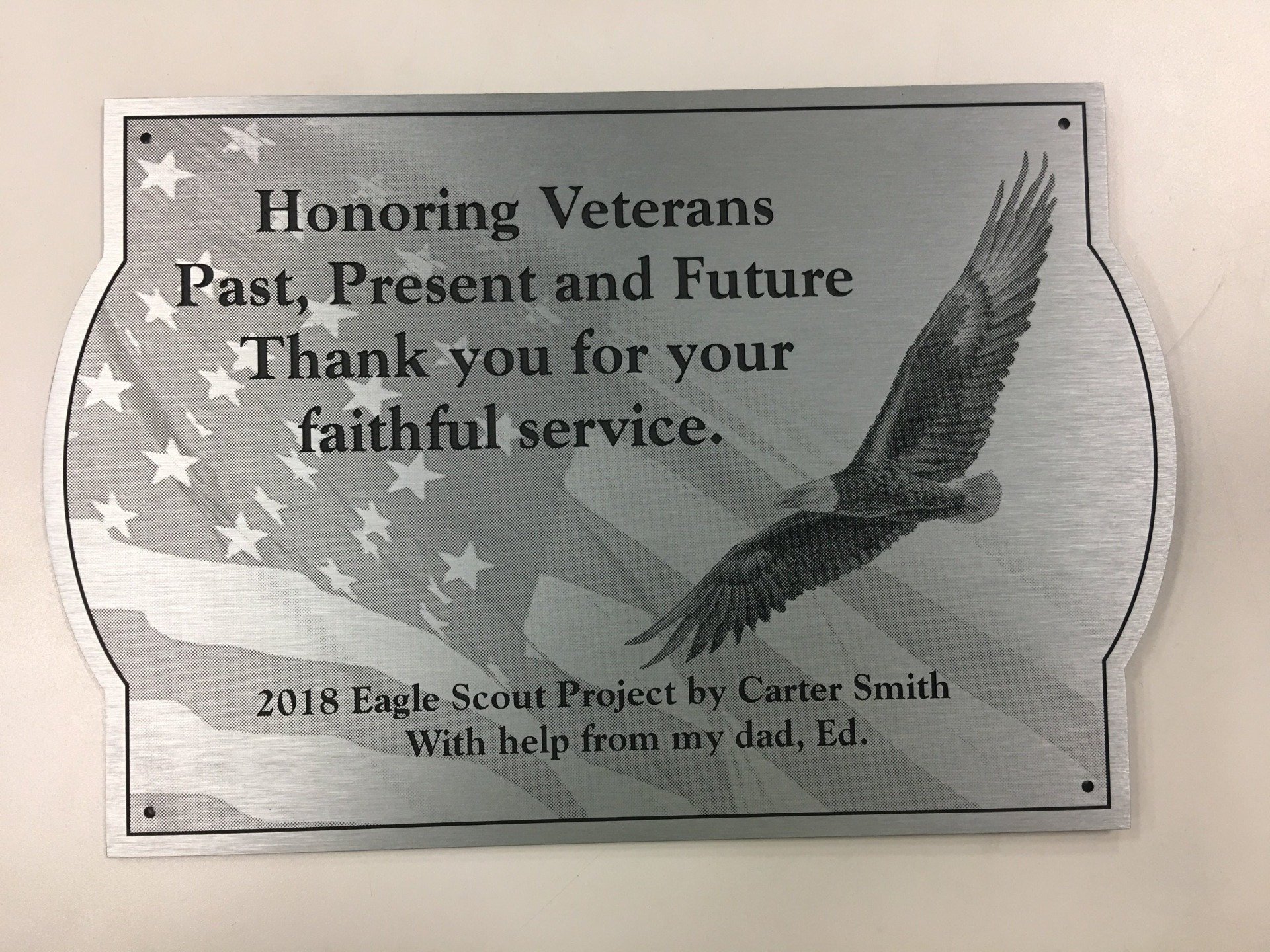 Honoring Veterans Plate, Bald Eagle with United States Flag, Everything is Etched