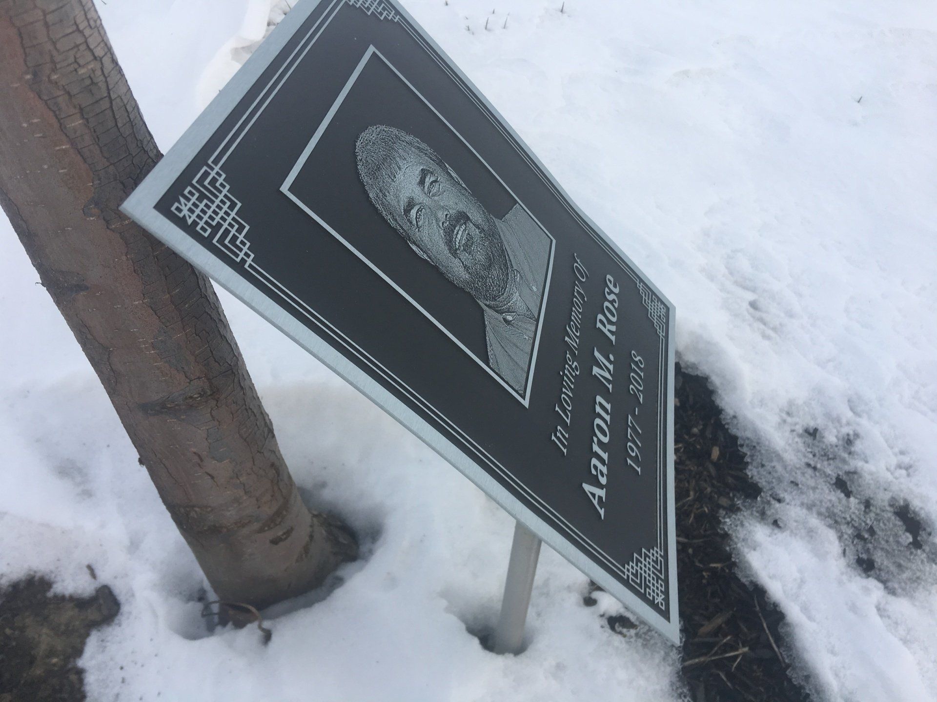 In Loving Memory Tree Stake, Long Lasting Recognition Signage, .125 Deep Etched Zinc