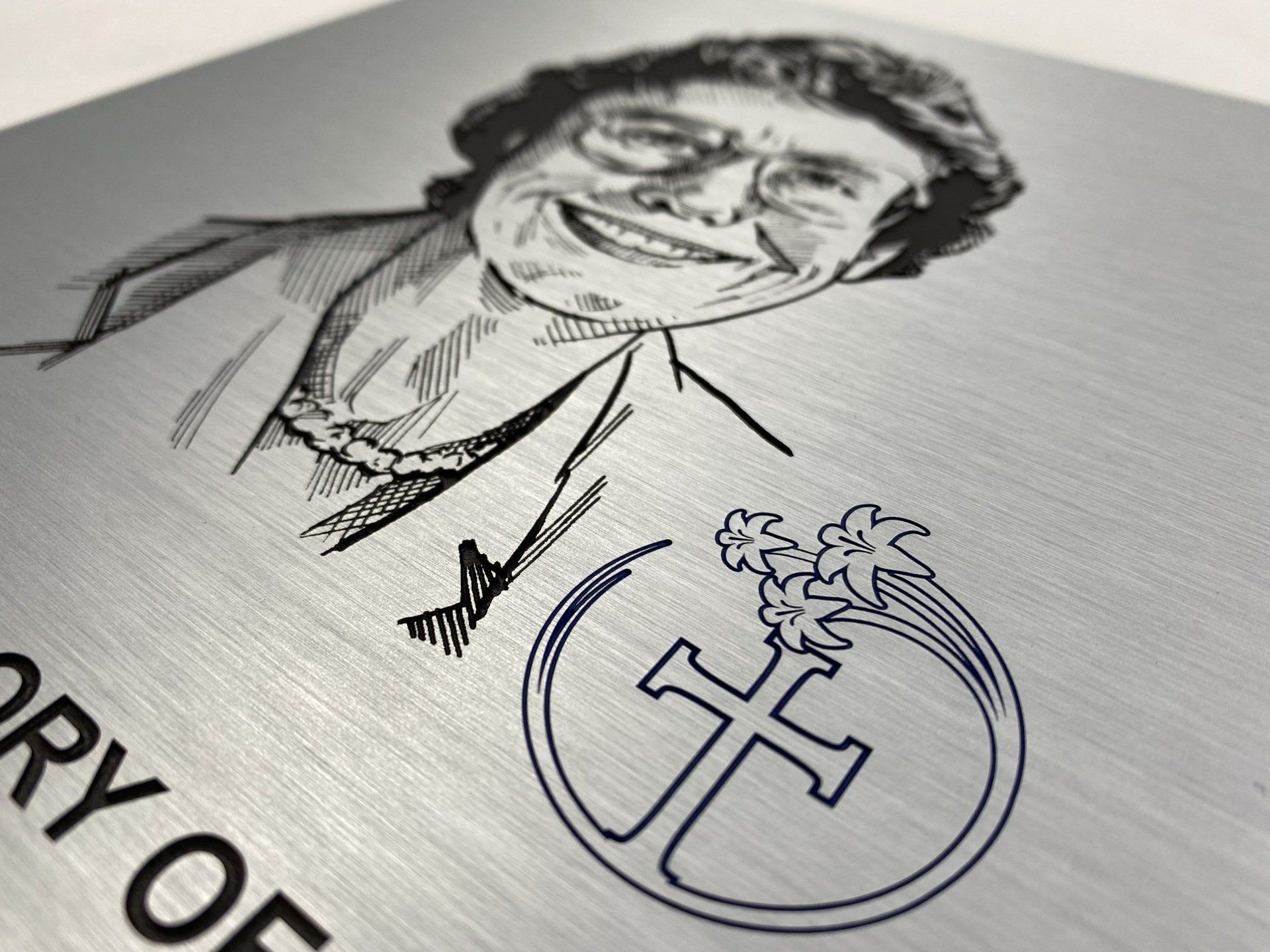 IN MEMORY OF DEEP ETCHED PLATE, SUITABLE FOR OUTDOOR USE, IN HOUSE PORTRAIT DRAWINGS ! !