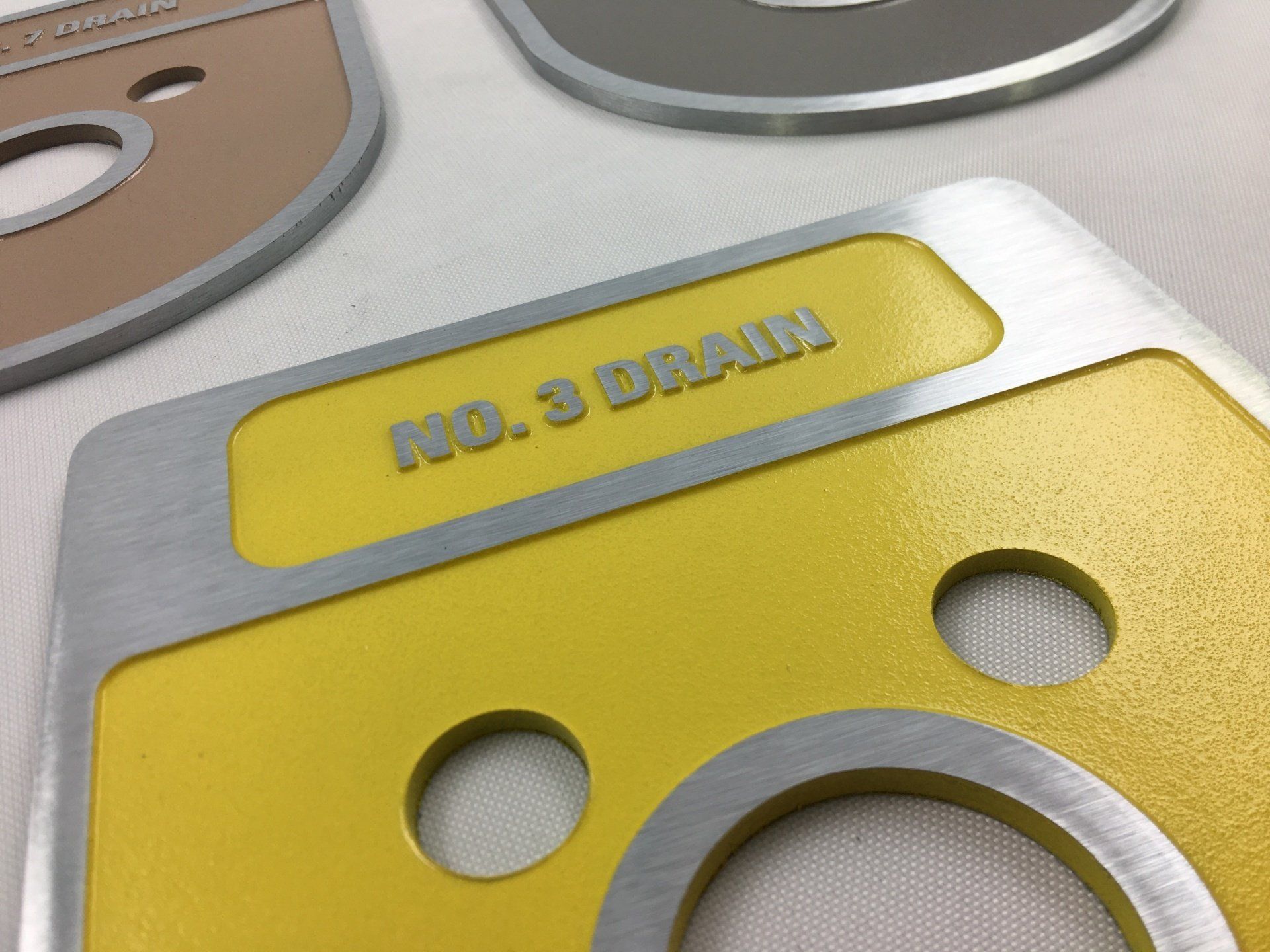 Industrial Drain Control Plates, Custom to Your Specs., Suede Finish, Long Lasting