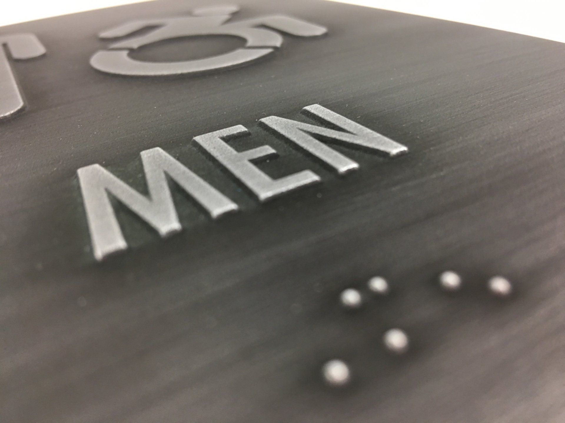 Men's Restroom Signage, Zinc, Antique Finish, ADA Braille