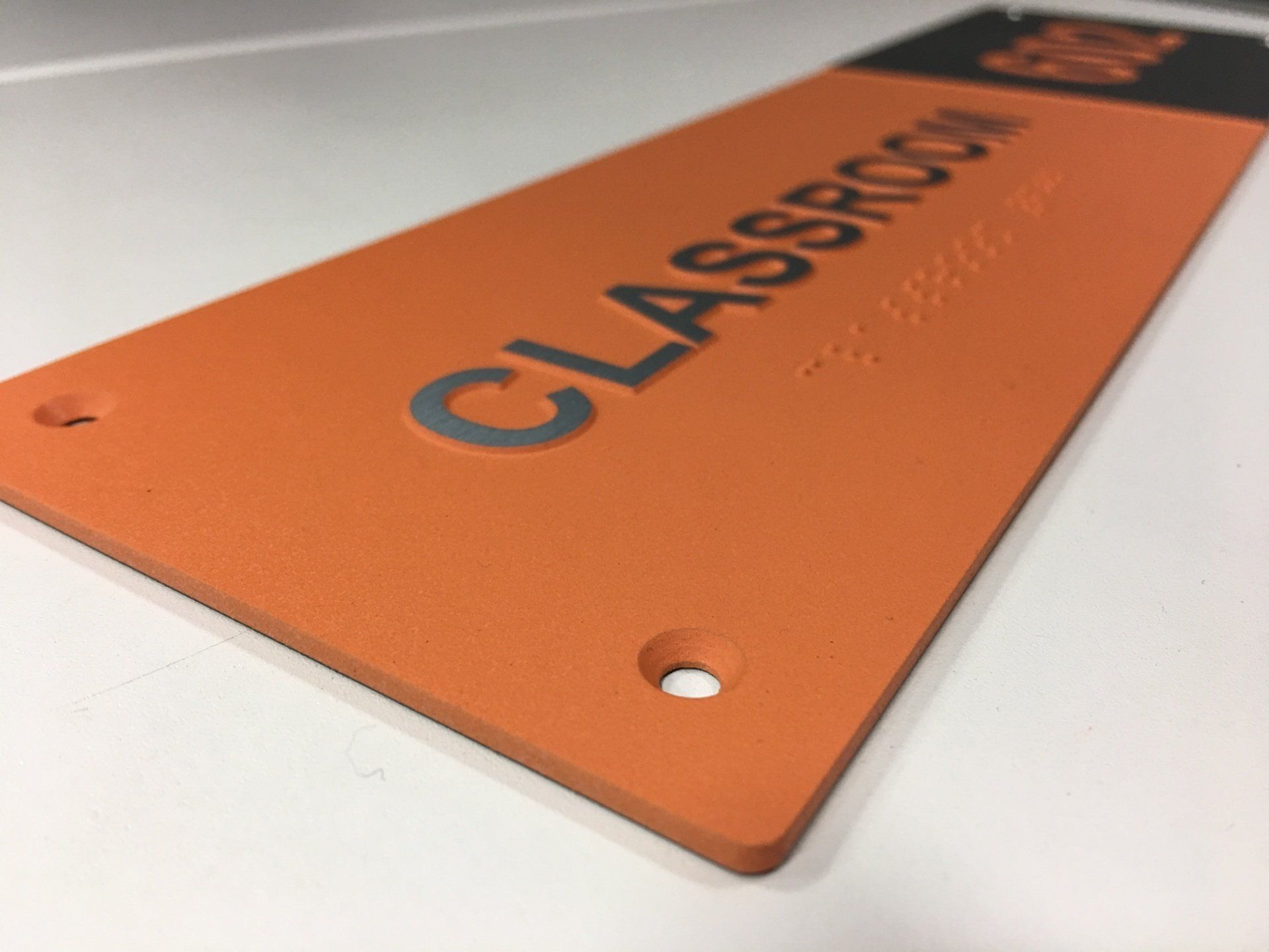 Room Signage, Suede Safety Orange, Countersunk Holes, .153