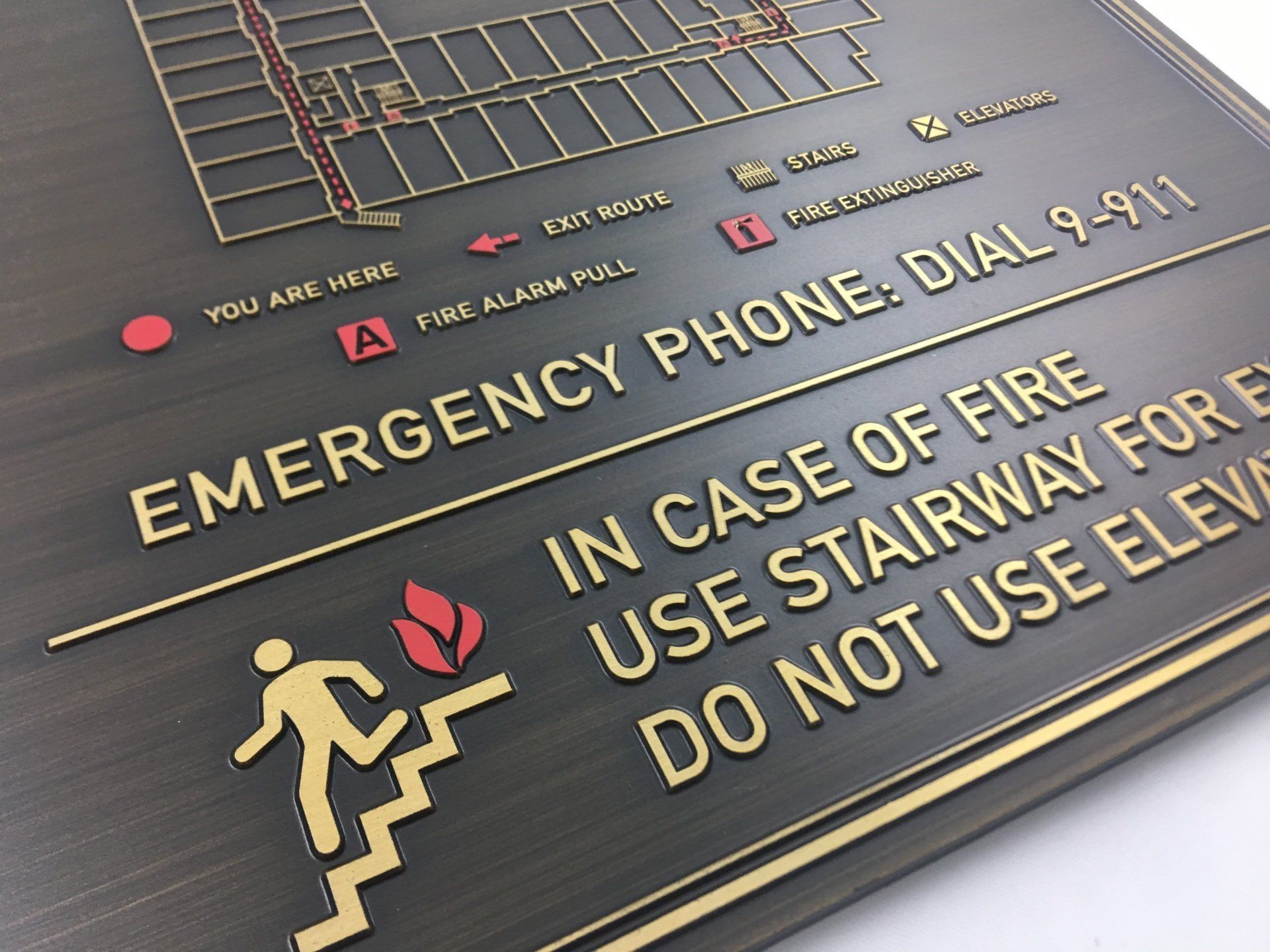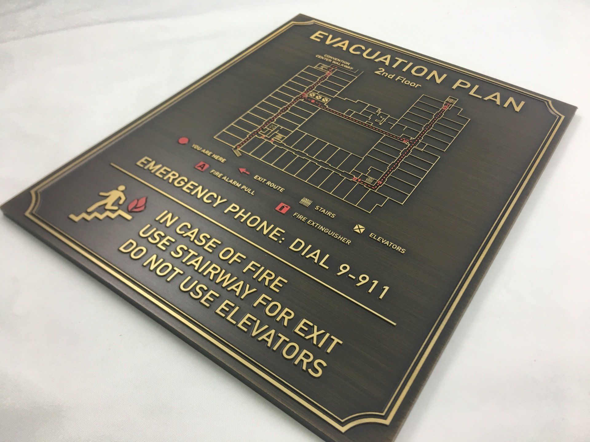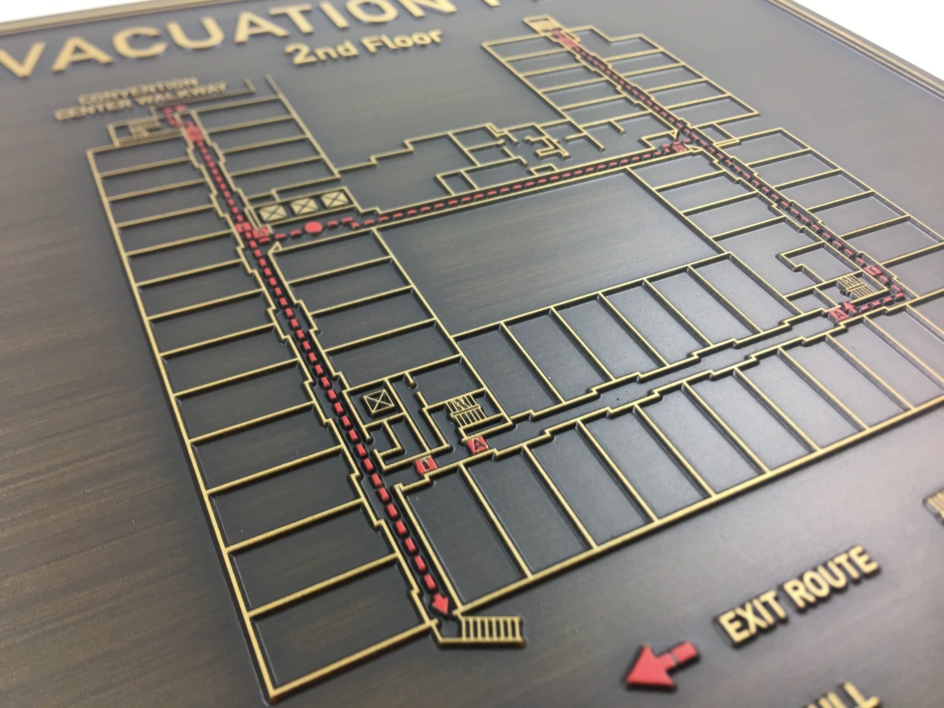 Wayfinding Sign, Detailed Floor Plan, Gold Antique Finish